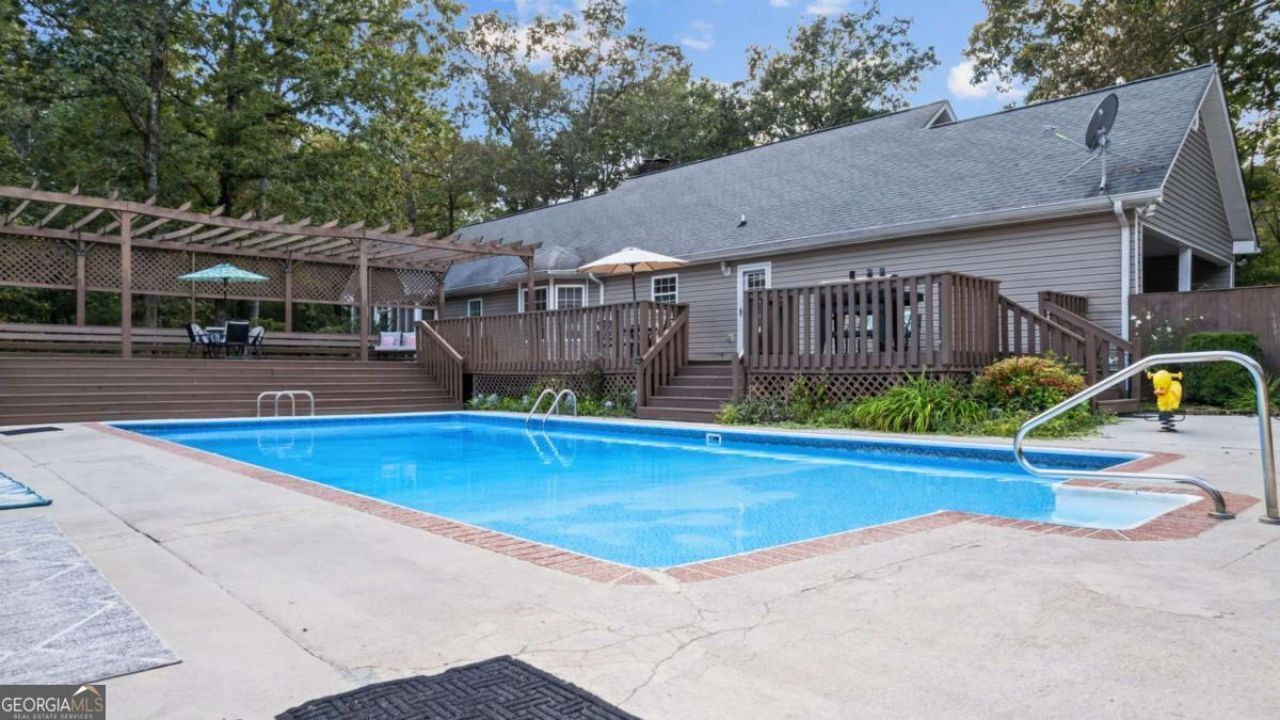All Car enthusiasts and hobbyist will appreciate this 5 bay garage, perfect for RV's, boats, tractors, business supply storage or vintage cars! There is a unfinished entertainment venue that includes a bar area, multiple bedrooms, a large kitchen space, and oversized gathering rooms on both upper and lower levels, ideal for weddings, events, dance studios or future customization. French doors open directly to the pool areas and its own private deck-making the possibilities truly endless. Currently used as an Airbnb adding incredible versatility, features a 1 bed apartment with kitchenette/full bath/walk-in closet-ideal for extended family, quest or rental income! Plus the owner's area includes a separate office/living/sleeping space with bath. This exceptional property offers a separate house with total of 5 bedrooms and 3 baths, with 3 bedrooms conveniently located on the main level. The oversized owner's suite features elegant tray ceilings, a spa-like bath with jetted tube and separate shower, and private access to a screened porch-perfect for relaxing evenings. The great room boast exposed beams and a striking stone fireplace, flowing seamlessly into a separate dinning room and a dream kitchen complete with stainless steel appliances, tray ceiling, and gorgeous hardwood floors throughout. A split-bedroom floor plan provides added privacy for a family and quest. Step outside and enjoy the hot tub or the 20x40 salt water pool on the expansive two-sided deck, thoughtfully designed for gatherings. A rare opportunity to live, entertain and generate income-all in one remarkable property. 20 min to Rome, 5 min to Summerville! Conveniently located for activities located in Trion, Lafayette and Chattanooga. According to the tax records the main house offers 2,429 sq ft and the additional building 5,676 sq ft. Stunning, income-producing estate on 4.99+-acres!